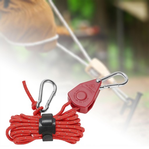 [Konstrukcja koła pasowego]: Wiatroodporna lina kempingowa ma konstrukcję koła pasowego z regulacją napięcia, którą można mocno zamocować, po prostu pociągając, pomagając zabezpieczyć namiot kempingowy lub markizę.
