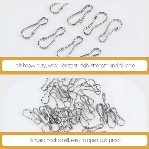 Te metalowe karabińczyki są wykonane z wysokiej jakości stali nierdzewnej, wytrzymałej i praktycznej przez długi czas użytkowania. Jest wytrzymały, odporny na zużycie, wytrzymały i trwały. Te karabińczyki sprężynowe można zawiesić na plecaku, breloczku do kluczy, czajniku i wszystkim, czego potrzebujesz, i mogą być używane do namiotów, lin itp., stylowe i praktyczne.