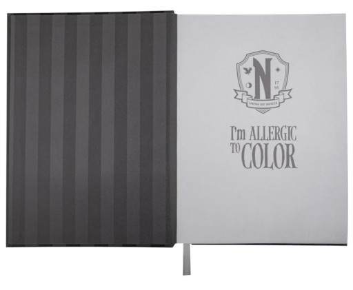 Notes w nietuzinkowym stylu? Najnowsza propozycja inspirowana jest główną bohaterką serialu Wednesday, który zyskał ogromną popularność zarówno wśród młodszych, jak i dorosłych widzów. Zarówno przednia, jak i tylna okładka tego notesu są ozdobione kultowym logo Nevermore Academy, ale z wyjątkowym akcentem. Przednia okładka pokazuje logo szkoły w stylowym czarno-szarym schemacie kolorów, podczas gdy tylna okładka zawiera rzeczywiste kolory akademii: fioletowy i złoty. W środku znajdują się tematyczne ozdobniki.