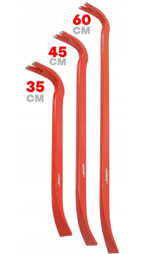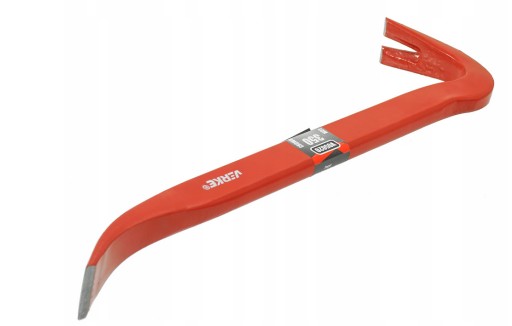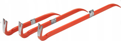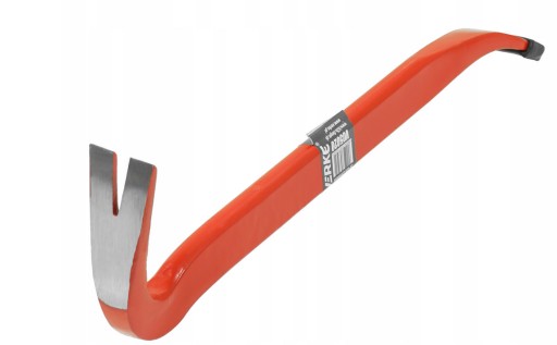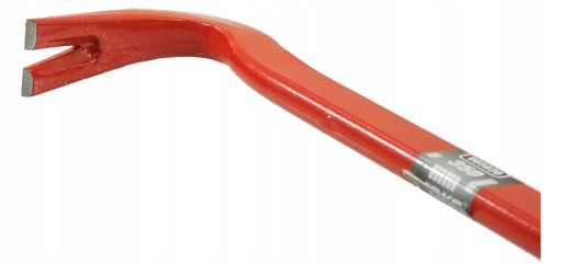 Łom odkuwany o płaskim przekroju z wyciagaczem do gwoździ. Powierzchnia lakierowana. Posiada dwa profile robocze, przeznaczone do usuwania gwoździ o różnych rozmiarach i demontażu materiałów budowlanych.