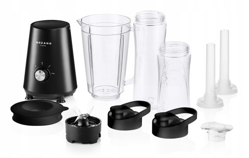 2 bidony z tritanu BPA FREE | 2 wkłady chłodzące | 2 poziomy prędkości + tryb PULSE | Ostrze ze stali nierdzewnej | Nóżki antypoślizgowe | Certyfikat CE oraz RoHS