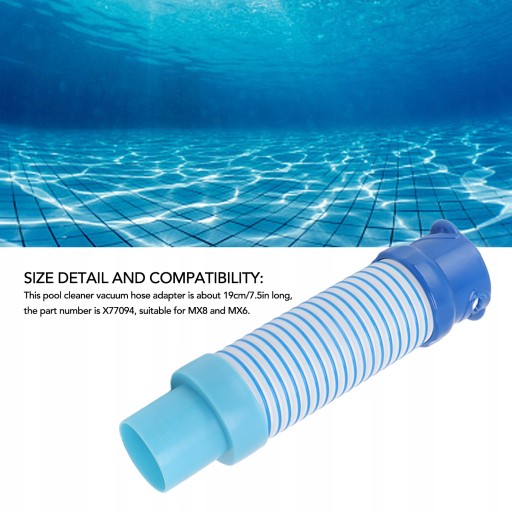 ⭐Funkcja:1. Szczegóły rozmiaru i kompatybilność: ten adapter węża odkurzacza do basenu ma około 19 cm/7,5 cala długości, numer części to X77094, odpowiedni dla MX8 i MX6.