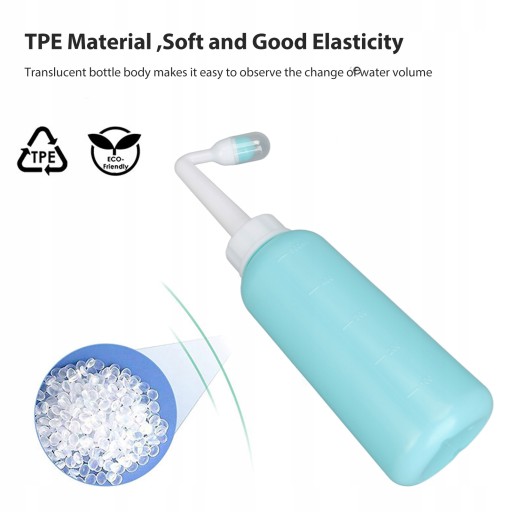5. Materiał TPE: Butelka z pompką do lewatywy jest wykonana z materiału TPE, butelki są miękkie, elastyczne i półprzezroczyste, co pozwala na łatwe monitorowanie poziomu wody.
