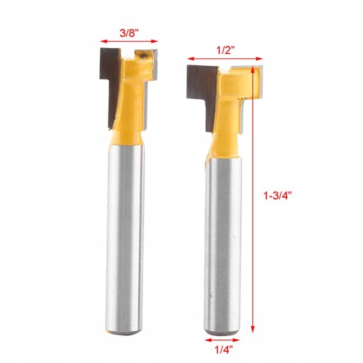 Dane techniczne: materiał: Węglik spiekany Długość: 47mm (1-3/4") Średnica chwytu: 6,35 mm (1/4") Średnica krawędzi tnącej: 12,7 mm (1/2"), 9,52 mm (3/8") Paczka zawiera: 2 x frezy do rowków