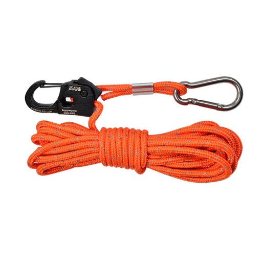 [Regulator samoblokujący] Samoblokujący regulator ze stopu aluminium jest wyposażony w hak o sile uciągu 231 kg. Wystarczy delikatnie pociągnąć, zostanie mocno zamocowany i nacisnąć przełącznik, aby poluzować linę.