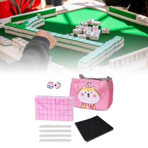 Zestaw podróżny Mini Mahjong z torbą 2 kości Chiński zestaw zabawek Mahjong Gra rodzinna Różowy