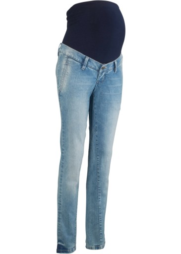 Wygodne i bardzo modne dżinsy ciążowe typu BOYFRIEND z ozdobnymi przetarciami. Przekonują wygodnym fasonem z paskiem na brzuch z miękkiej bawełny i regulacją.