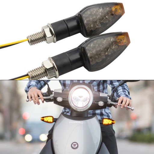 Kierunkowskazy mocowane na śrubę M10, z zarobionymi kablami.