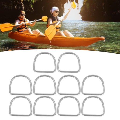 10 szt. Klamry z pierścieniem D. Półokrągłe pierścienie w kształcie litery D ze stali nierdzewnej 316 do olinowania kajaków morskich