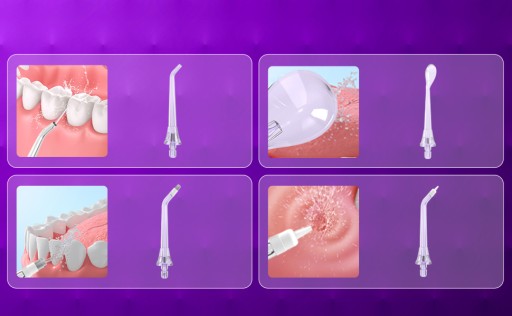 ✨ Dysza periodontyczna - Czyści kieszonki przyzębia i inne trudno dostępne miejsca w jamie ustnej. Może być również stosowany do wprowadzania płynów leczniczych między linię dziąseł a kieszonkami przyzębia. Aby uniknąć obrażeń dziąseł, dysza powinna być używana tylko przy najniższym ciśnieniu.