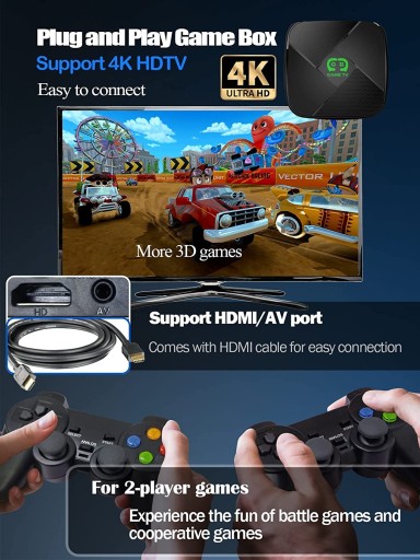 Plug and Play/4k HDMI Output: It is easy to install and use, just connect the TV to the gaming box with a high-definition cable, then set the TV to HDMI output mode and it is ready to use. Support 4K high definition output, smooth running of various full frame games, high resolution 3D double restoration, high resolution color pixel filter, the image is clearer, the color is more vivid, and the effect is more realistic.