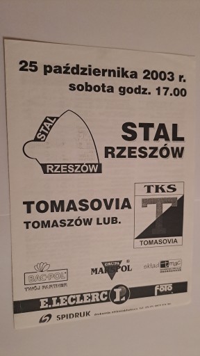 СТАЛЬ ЖЕШУВ - ТОМАСОВИЯ ТОМАСОВ ЛЮБЕЛЬСКИ 25.10.2003 ПРОГРАММА МАТЧА