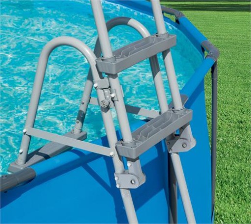 Drabinka przeznaczona jest do basenów do 122 cm wysokości. Antypoślizgowe stopnie z tworzywa oraz metalowe rączki ułatwią korzystanie ze sprzętu. Dzięki temu, że drabinka jest dwustronna, zapewnia wygodne wchodzenie i wychodzenie z basenu. Całość jest bardzo łatwa w montażu, współgra z każdym rodzajem basenu.