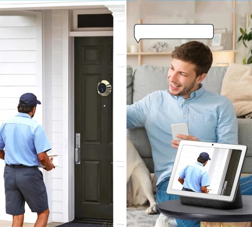 Gdy ktoś przy dzwonku do drzwi uruchomi pir, a aplikacja otrzyma powiadomienia i możesz sprawdzić podgląd na żywo, sprawdzić, kto jest przy drzwiach i usłyszeć, co mówi gość. Ale gość nie słyszy, co mówisz. Ponieważ kamera drzwiowa jest tak mini, że nie można zainstalować głośnik.