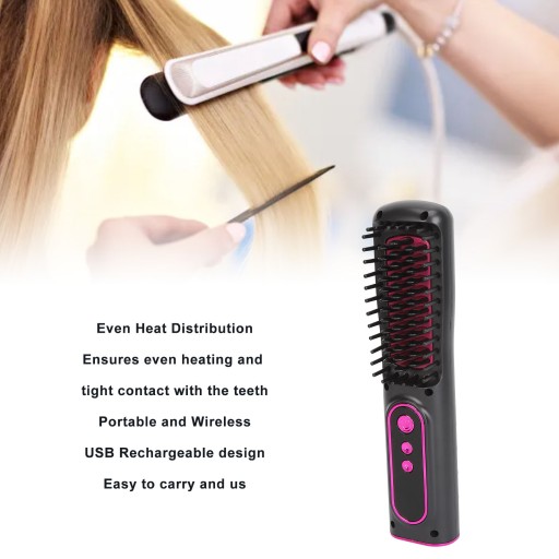 4. PRZENOŚNY I BEZPRZEWODOWY: Mini szczoteczka do prostowania jest przenośna i łatwa w użyciu bez ograniczeń związanych z kablami lub przewodami, zapewniając mobilność i wszechstronność stylizacji.