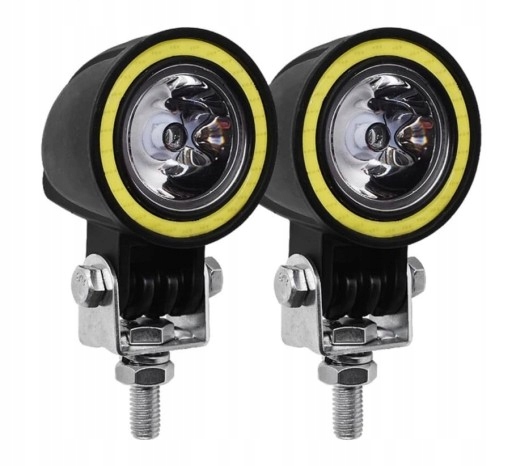 Zestaw dwóch małych halogenów motocyklowych cree led TYP LGLE 10-XLS o mocy 10Wat każdy, moc świecenia ok.1000 lm temperatura barwy 5500k (zimna biała) dzięki kolorowi obudowy czarny, kolor ringu biały .