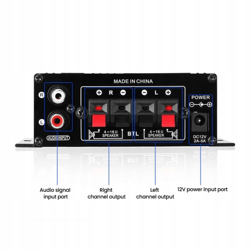 Mini wzmacniacz audio, dwukanałowe wejście z wejściem AUX 3,5 mm