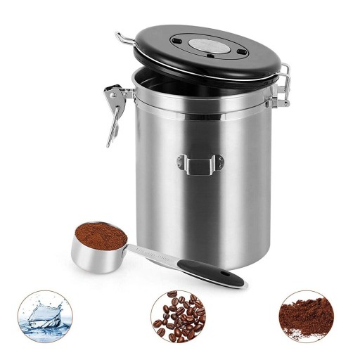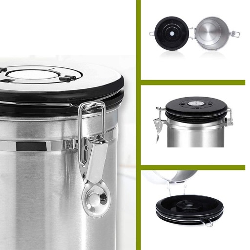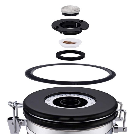 - Silikonowy pierścień uszczelniający pomiędzy pokrywką a pojemnikiem zapewnia mocniejsze uszczelnienie, co chroni ziarna kawy przed zanieczyszczeniem powietrza i utlenianiem.