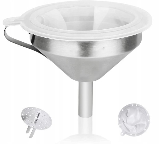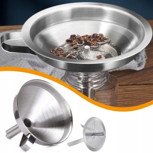 - ✔️ 【Materiał wysokiej jakości】: Lejek wykonany jest ze stali nierdzewnej SUS304. Lejek z praktycznym uchwytem i drobną siatką wykonaną z nylonowej siatki 300 mesh wyjmowany filtr. Ten lejek z filtrem ułatwi Ci wszystko.