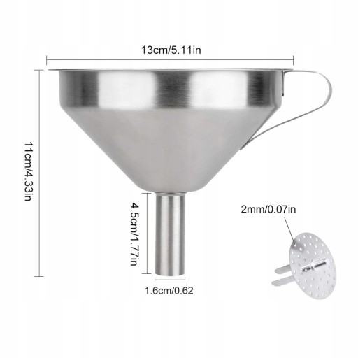 - ✔️【Praktyczny】: stal nierdzewna klasy spożywczej 304, niełatwa do rdzewienia, trwała, bezpieczna i higieniczna, bezpieczniejsza w użyciu. W tym samym czasie przyjęto humanizowany projekt. Uchwyt lejka jest ergonomiczny. Przenośny i wygodny. Dobra jakość wykonania, proces spawania elektrycznego, mocny i niełatwy do odpadnięcia. Drobno polerowane i szczotkowane, delikatne i gładkie.