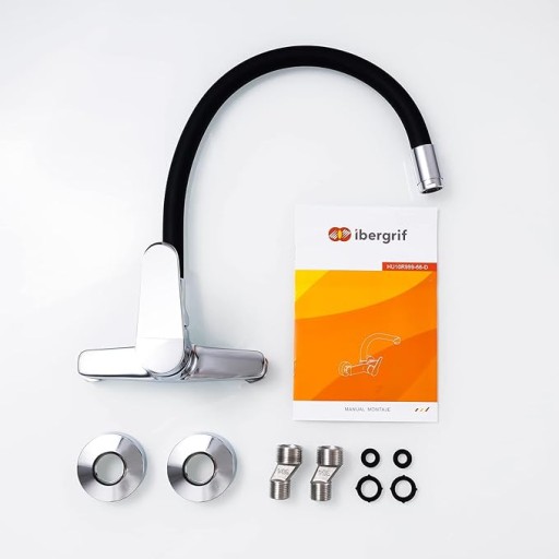 Кухонный смеситель Ibergrif, настенный, поворот на 360°, настенный смеситель, хром, черный