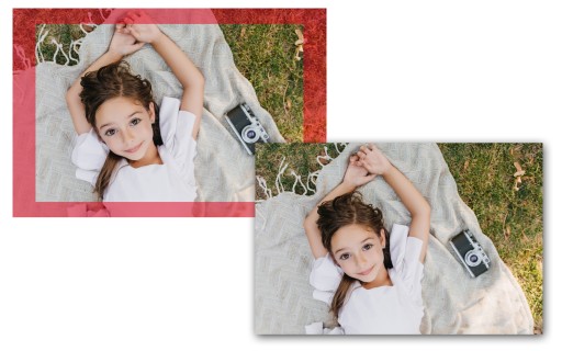 Ta opcja kadrowania gwarantuje, że całe Twoje zdjęcie (bez przycięcia) znajdzie się na odbitce. Pamiętaj, że przy niestandardowych proporcjach fotografii, po bokach zdjęcia mogą pojawić się białe paski.
