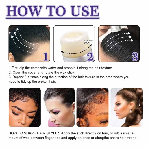 3. WIELE ZASTOSOWAŃ: Wosk do stylizacji włosów w sztyfcie może wygładzić kręcone włosy na linii włosów i na karku, odpowiedni zarówno do włosów o delikatnej strukturze, jak i innych rodzajów włosów