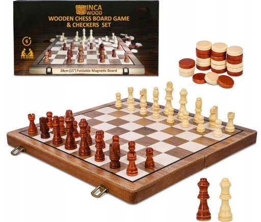 Zestaw szachowy, magnetyczna szachownica z drewna, wykonana ręcznie - piękny i przenośny zestaw szachów podróżnych dla dorosłych i dzieci, wymiary 39 x 39 cm.