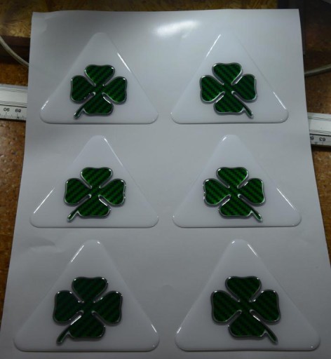 Naklejki drukowane na folii samoprzylepnej, pokryte żywicą poliuretanową, która nadaje im wypukły kształt i podwyższoną trwałość. Są odporne na zewnętrzne warunki atmosferyczne (temperatury w zakresie od -40 do +80°C, opady, wilgoć, promieniowanie UV). Naklejki 3D mają bardzo szerokie zastosowanie. Świetnie sprawdzają się jako reklama z firmowym logo na pojazdach, komputerach, meblach, sprzęcie RTV, AGD.