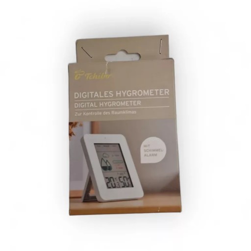 Higrometr cyfrowy z czujnikiem pleśniKolorBiałyWymiarySzer. x wys. x gł.: ok. 8,5 x 10,5 x 19,5 cmWyświetlacz: ok. 7,5 x 5 cmIlośćW zestawie 2 baterie LR03 (AAA) i instrukcja obsługi