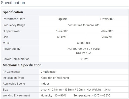 ◎ 4 pasma / Wzmocnienie 70dB / Moc wyjściowa 20dBm / CHIP AGC - nie wprowadza interferencji na stacje bazowe dzięki czemu jest bezpieczny w użyciu / z anteną wewnętrzną 360' i anteną kierunkową zewnętrzną dającą najlepsze rezultaty i parametry pracy zestawu.