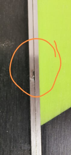 Na prawej części widoczne niewielkie uszkodzenie wewnętrznej krawędzi okolice 25 cm od przodu dechy ( do naprawy we własnym zakresie)