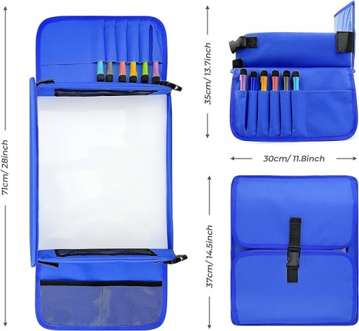- Wielofunkcyjny i przenośny - Stolik podróżny dla dzieci może być używany jako przenośny stół jadalny lub stół do gry, zabawy i wykonywania innych czynności. Jednocześnie część planszy do gry z białą tablicą może być również używana do bazgrania, pisania, czytania itp., aby wzbogacić dziecięcą podróż samochodem.