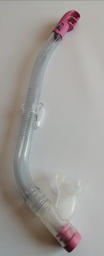 - Przezroczysta rurka z elastycznego materiału zakończona u góry nowoczesną osłoną przeciwbryzgową, która ogranicza przedostawanie się wody i sprayu, nawet w obecności fal i wzburzonego morza, z systemem mocowania z regulacją wysokości do maski