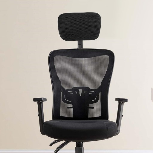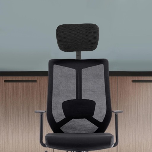 [Materiał]: Zagłówek krzesła biurowego wykonany jest z wysokiej jakości wspornika PP i tkaniny siatkowej, oddychającej, mocnej i łatwej w użyciu.