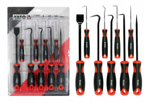 Zestaw haczyków z rękojeścią YATO 9 el + skrobak