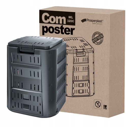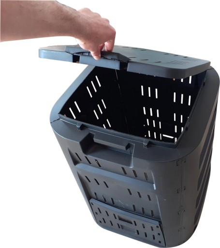 Sprawdzony kompostownik Compogreen o pojemności litrów przeznaczony jest do kompostowania różnego rodzaju odpadów biodegradowalnych i uzyskania naturalnego nawozu Zamknięta forma ogranicza dostęp zwierząt do składowanych odpadów, natomiast otwory w ściankach bocznych pozwalają na optymalną cyrkulację powietrza.Kompostownik wyposażony jest w pokrywę, zapinaną na zamek i dwie klapki na dole, ułatwiające wygodne wyjmowanie gotowego kompostu Materiał, z którego Compogreen jest wykonany, czyni go lekkim i niezwykle wytrzymałym.