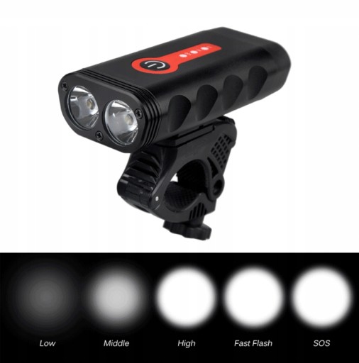 Tryb ściemniania: high-medium-low-strobe-SOS (długie naciśnięcie dowolnego biegu przez 2 sekundy, aby wyłączyć po uruchomieniu)
