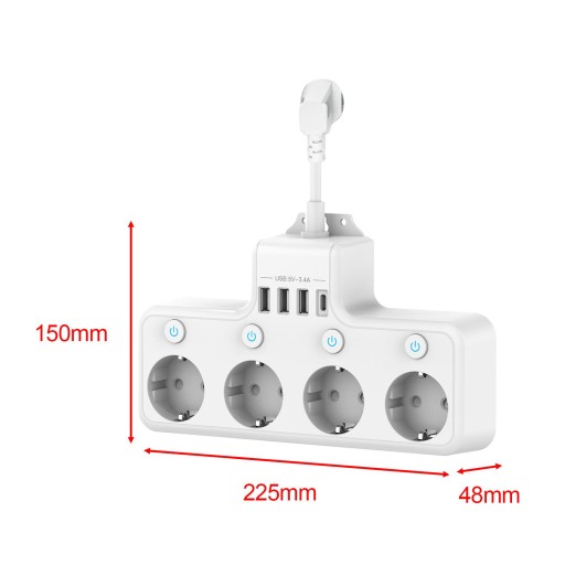 [Funkcja]: Wtyczka EU zasila listwę z 4 gniazdami, wiele gniazd z wtyczką EU, co jest wygodne w użyciu.