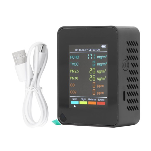 . MONITOR JAKOŚCI POWIETRZA DETEKTOR DWUTLENKU WĘGLA CO2 TVOC HCHO PM2.5 PM10