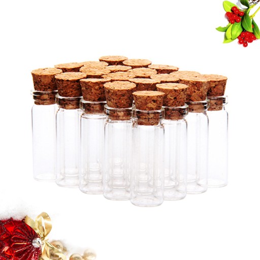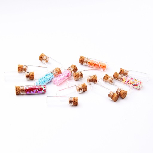 Jest to zestaw mini szklanych butelek z drewnianą zatyczką z korka, które można wypełnić wiadomościami, potpourri, kulkami galaretek, akrylowymi kamieniami i kamieniami szlachetnymi, płatkami kwiatów, ozdobić wstążką lub po prostu wypełnić piaskiem, a także dobrze jest zrobić to samodzielnie jako naszyjnik wisiorek, butelki z życzeniami driftu lub butelki z perfumami. Poza tym nadaje się do dekoracji lub wysłania jako prezent dla przyjaciół.