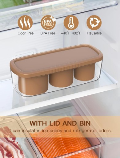Łatwa obsługa – elastyczna silikonowa forma ułatwia wyjmowanie kostek lodu. Wystarczy zdjąć zewnętrzną formę i ścisnąć nakrętkę, aby uwolnić świeży lód. Jest super trwały, o wiele lepszy od tych marnych plastikowych tacek i łatwiejszy do czyszczenia i przechowywania. Idealny do przygotowywania ulubionych schłodzonych napojów!