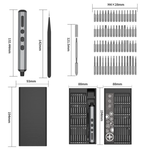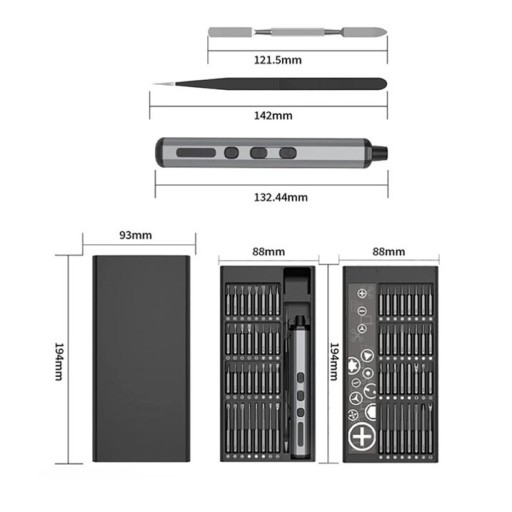 Elektryczny precyzyjny śrubokręt wkrętak z bitami - zestaw 68 elementów