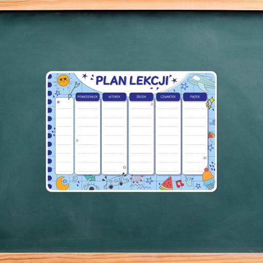 Plan lekcji idealnie sprawdzi się na początek roku szkolnego - do organizacji zajęć oraz zapamiętania szkolnych lekcji.