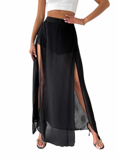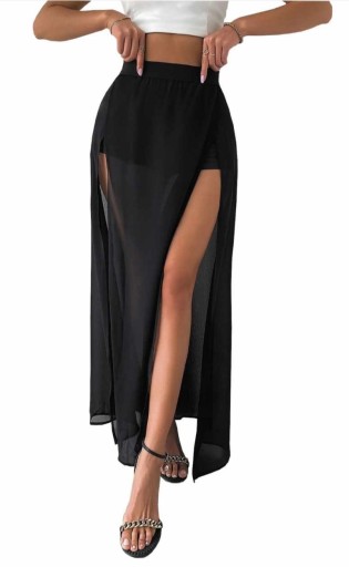 DŁUGA SPÓDNICA Z SZORTAMI ZWIEWNA SZYFON CZARNA
