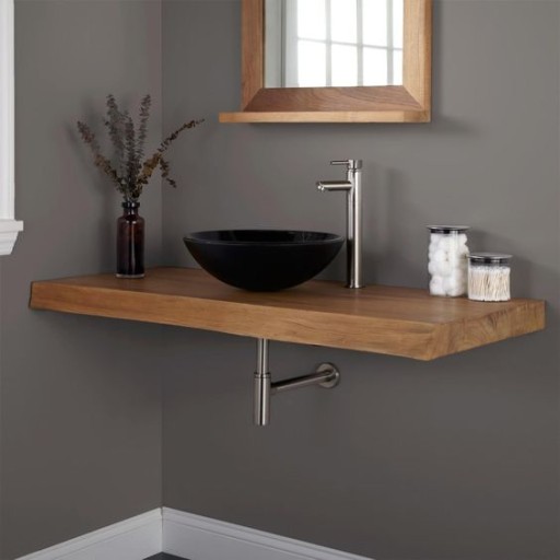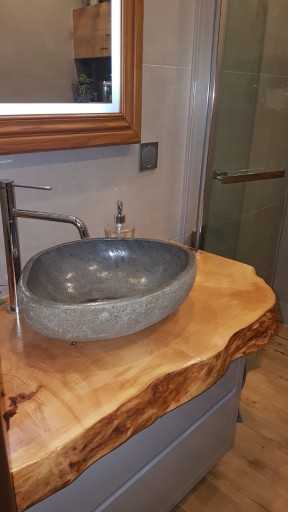 Szerokości blatu/półki łazienkowej : około 32 - 35 cm / różna według długości w zależności od kształtu naturalnego drewna /
