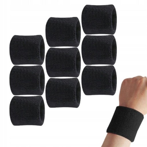 ✔️FROTKA NA RĘKĘ NADGARSTEK SPORTOWA OPASKA CZARNA SZEROKA TENIS PIŁKA BIEGANIE - 10 SZTUK✔️