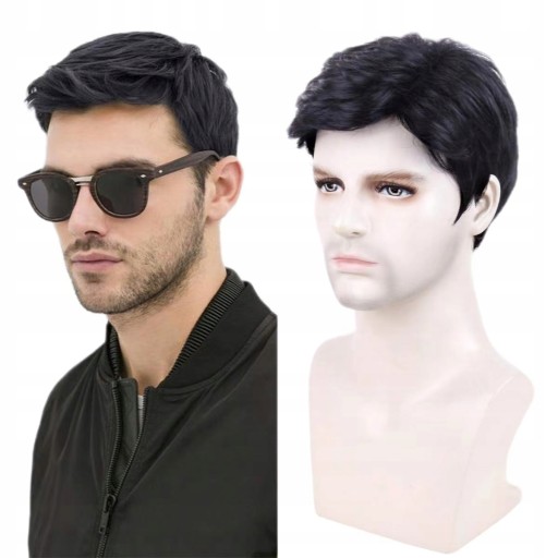 Peruki Męskie Czarne Peruka Naturalna Free Cap Postać peruka
