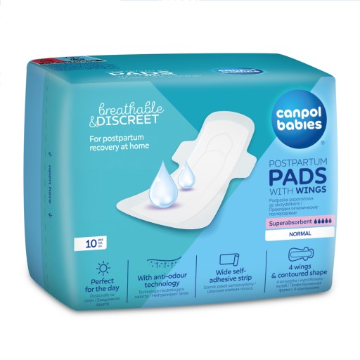 Superchłonne podpaski poporodowe Canpol babies są idealnym rozwiązaniem dla kobiet w czasie połogu do użytkowania w domu po wyjściu ze szpitala. Podpaski poporodowe są cieńsze i dyskretniejsze niż podkłady poporodowe, ale również bardzo chłonne i oddychające. Zwykłe podpaski nie sprawdzają się w tej sytuacji. Rozmiar podpaski został dostosowany, tak aby dobrze zabezpieczała przed przeciekaniem.