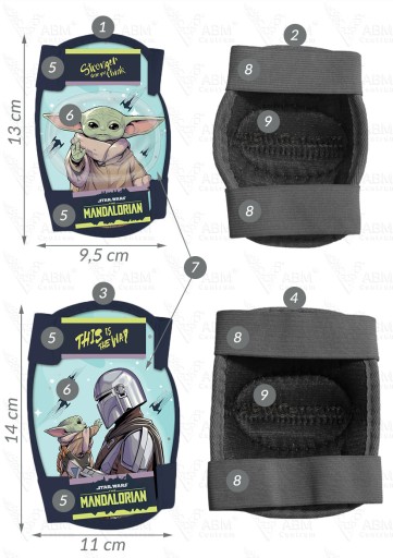 9,5 cm - całkowita szerokość ochraniacza na łokieć.